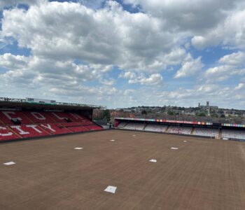 Sadly, for now at least, the unbelievably manicured turf that we saw on the last day of the season is no more as the annual service and resurfacing work is underway in preparation for a perfect playing pitch for the beginning of next season.